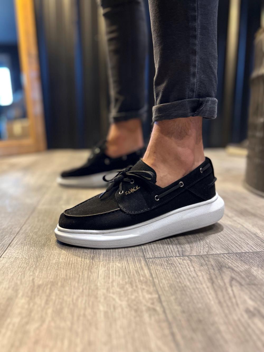 Knack - Erkek Klasik Süet Ayakkabı 009 Siyah (Beyaz Taban)